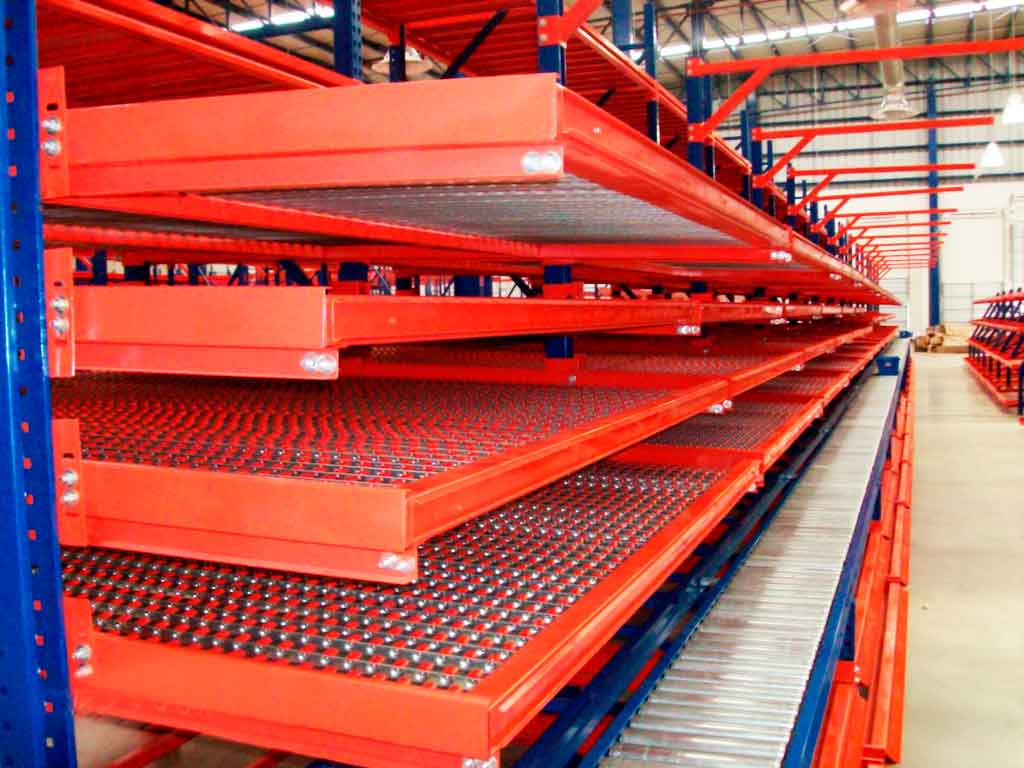 El Sistema Carton Flow proporciona visibilidad de inventario para que los pasillos se mantengan surtidos y que se pueda abastecer el inventario simultáneamente. Gracias a que están provistos de rodamientos, la mercancía tendrá eficiente rotación de PE/PS: Primeras Entradas/ Primeras Salidas, las cuales garantizan que su mercancía se mantendrá al día.