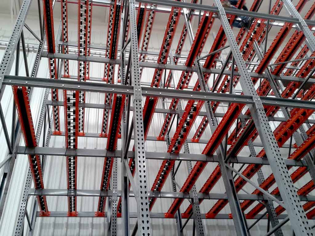 Es un Sistema de almacenaje de Alta Densidad, los Racks push-back para pallets cuentan con un único punto de carga y descarga, en el frente de la estructura y las unidades de carga son almacenadas empujando las anteriores hacia el fondo del rack. Este Sistema de almacenaje es ideal para el manejo de la producción por lotes (producto en tarima). Sistema Push Back en el que se combinan aprovechamiento de espacio y rotación automática de stock, ya que al retirarse una tarima de inmediato el espacio vacío se vuelve a ocupar con la siguiente tarima y su producto. Se reduce considerablemente el número de pasillos, evitando el desperdicio de espacios, almacenando así un alto volumen de producto en un área muy pequeña.